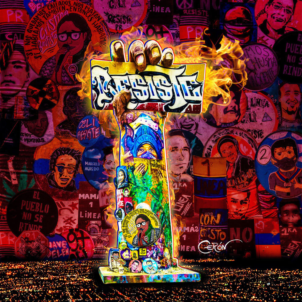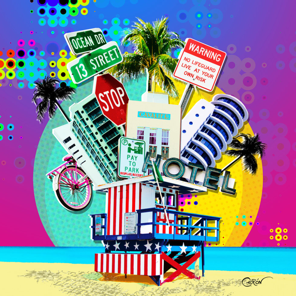 Francisco Cerón selects the most suitable photographs for his vision, uses digital technology to create photomontages and collages to give it a pop art appearance, and uses the dot as a unifying element, amplifying it to make it the protagonist in homage to Pop Art and the principle of lithographic printing.